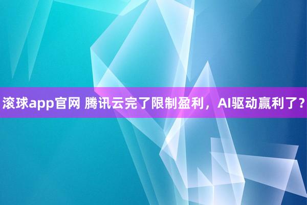 滚球app官网 腾讯云完了限制盈利,AI驱动赢利了?