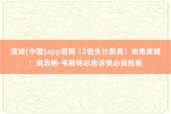 滚球(中国)app官网 12板生计新高!埃奇库姆:说念格·韦斯特总告诉我必须抢板