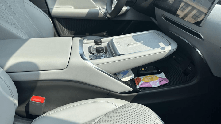 悬浮式扶手台下方是纷乱的怒放式储物空间,实测放下女生的高跟鞋或手提包绰绰多余。门板储物也过程再行策动,前门能放下2把雨伞和2瓶水,之前被吐槽的扶手槽底部是空的弗成鸿沟机,这次也给大众封上了,真的细节满分。