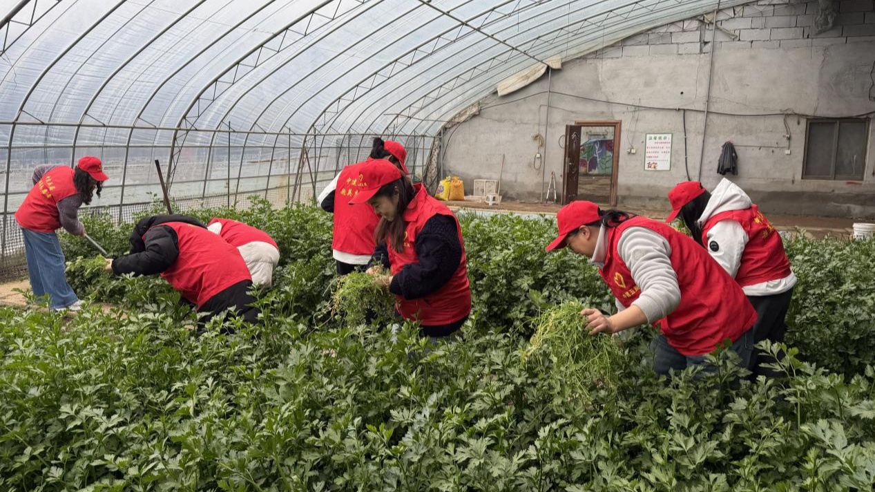 “这块地的草除干净了,我们往那处挪挪!”春日的暖阳透过蔬菜大棚的棚膜,照在济南高新东区蔬菜大棚内绿油油的田垄上。几位身穿红马甲的女职工正弯腰拔草、清算杂物。她们是“超英志愿者”的一员,趁着责任破绽赶来助农。