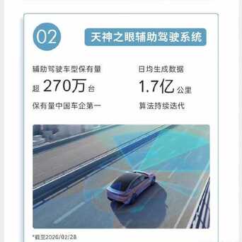 比亚迪天使之眼援助驾驶系统,适度2026年2月28日,搭载车型保有量超270万台,居中国车企第一,滚球(中国)app官网日均生成1.7亿公里行驶数据,这个级别的数据去喂养智驾系统,念念象自进化是何等的快。