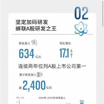 研发插足634亿,比亚迪无愧是蝉联A股研发之王。同比增长17.1%,集结两年位居A股上市公司研发插足榜首。2021至2025年,公司累计研发插足已超2400亿元,当前比亚迪研发工程师限度超12万东说念主,累计苦求专利超7.1万项、授权超4.2万项,特殊强的一个数据。